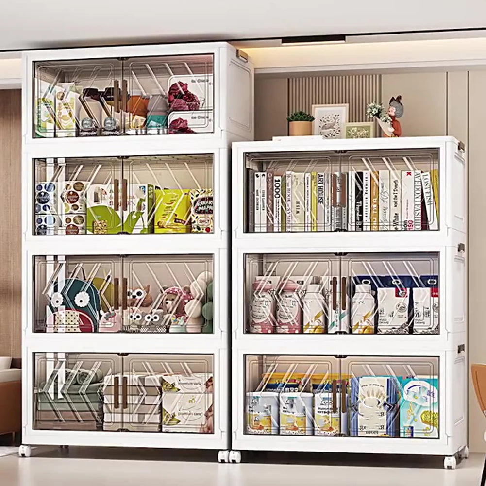 - 4-tier with doors and lids: Transparent lids and sturdy doors keep contents organized and out of sight, while lids add an extra layer of protection and dust resistance.