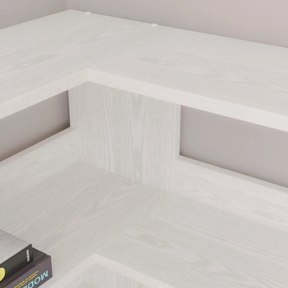 Six levels of display and storage are arranged in a convenient L-shaped design, specifically crafted to nest into corners. Each shelf is supported by a 2.8-inch baffle, keeping books, photos, plants, and utensils securely in place while maintaining a clean, organized look.