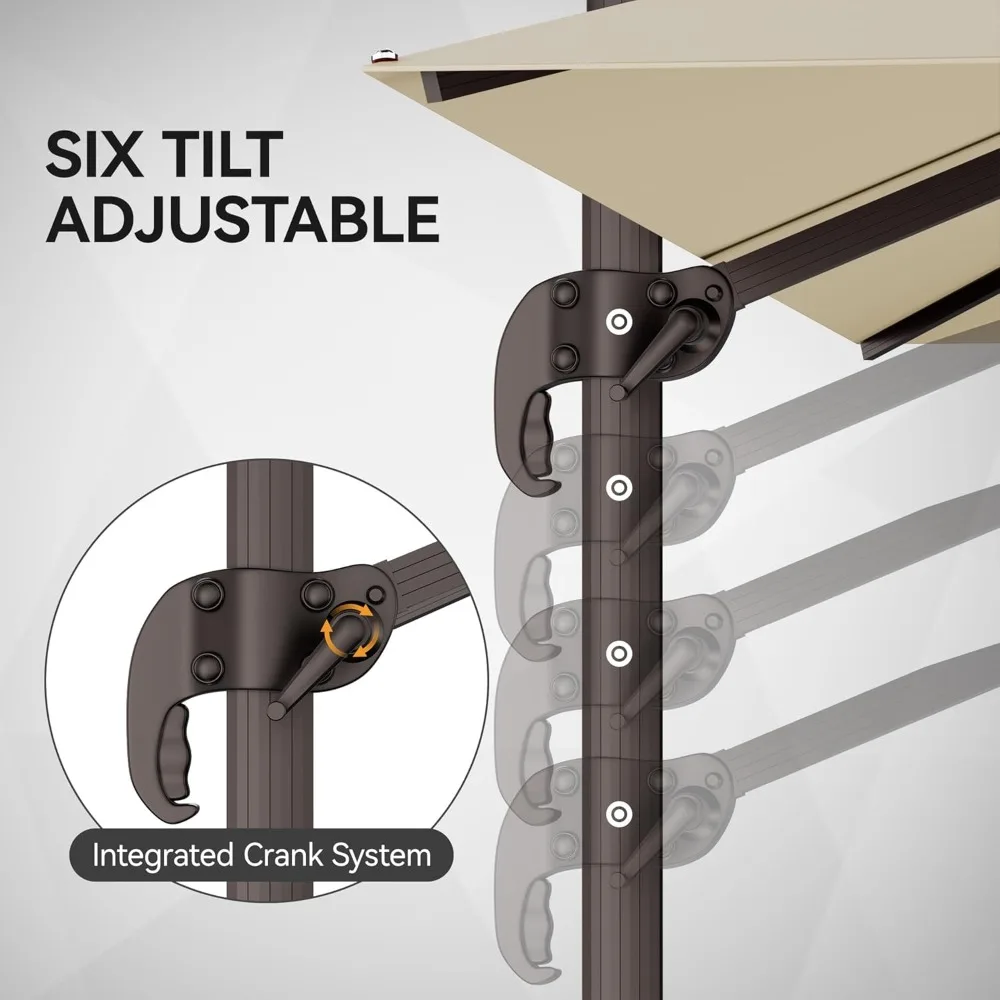 - Easy to Install & Use: This Cantilever Umbrella has unique handle design and crank system that effortlessly opens, closes and adjusts to the desired angle. You may refer to the installation video we uploaded in the details page. The installation is relatively simple, but since it is a large and heavy duty umbrella, so it's better for two people to work together to carry and install. We recommend a fillable base over 200lbs counterweights for safe and stable in outdoor use.