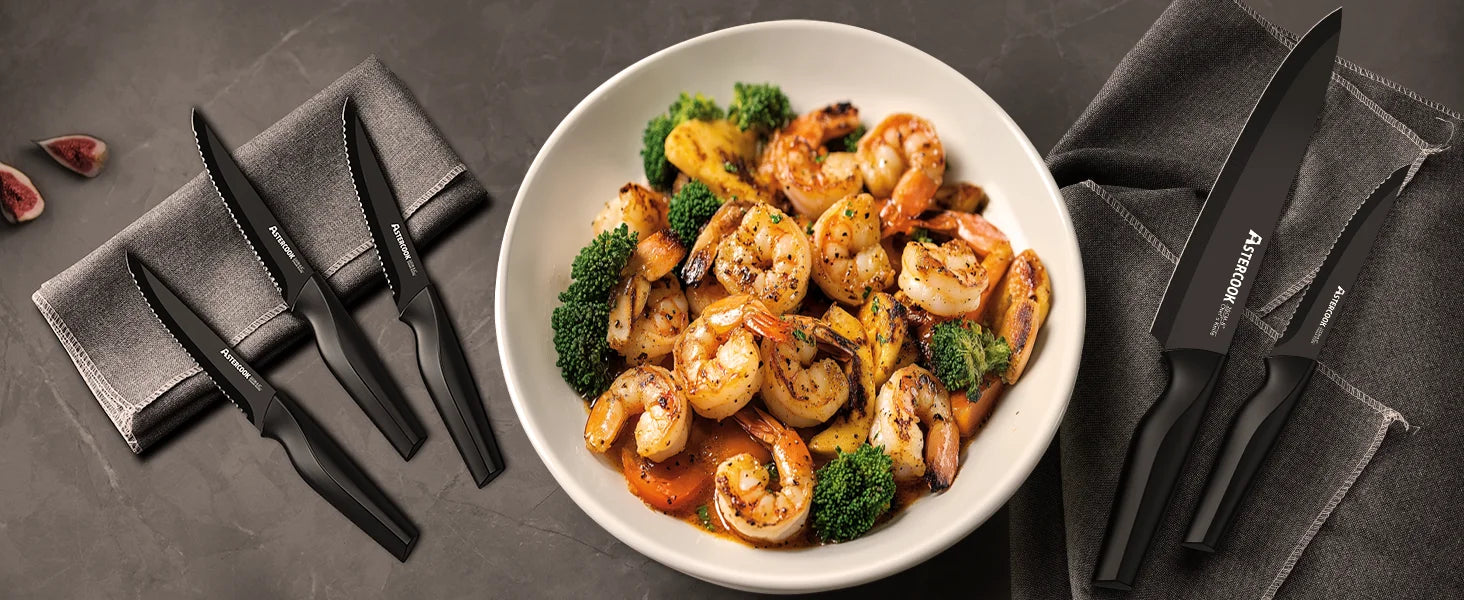 The Astercook knife set is ideal for home cooks who demand reliability, precision, and value. Whether you’re prepping vegetables, carving poultry, or slicing through fish, these blades stay sharp and comfortable to use. Add this versatile set to your kitchen arsenal and enjoy restaurant-quality performance at home.