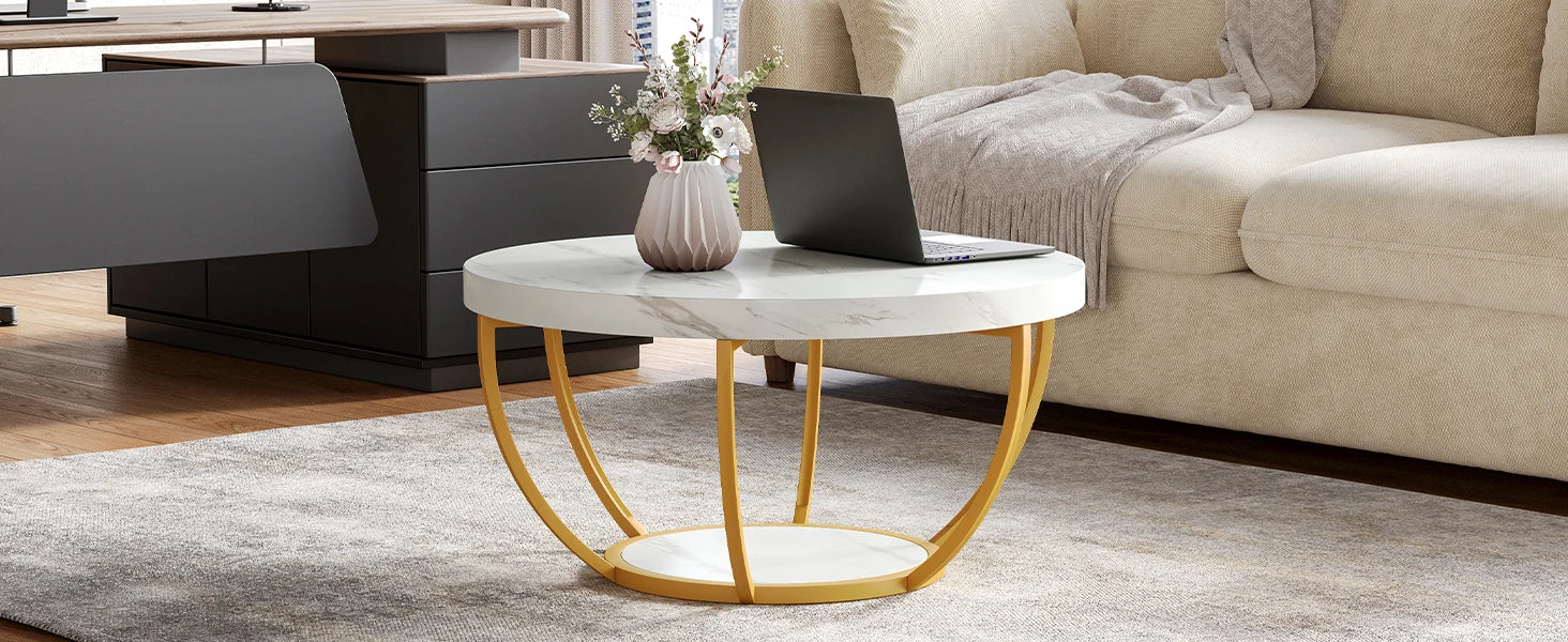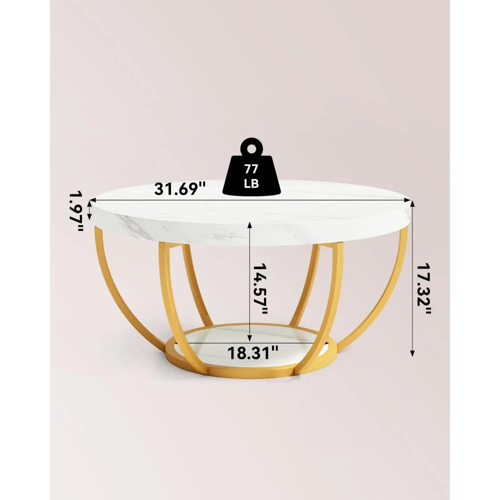 32 Inch Circle Faux Marble Coffee Table With Gold Legs