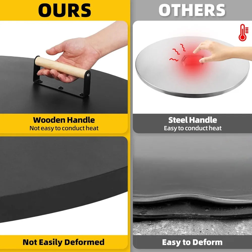 Round Fire Pit Lid 38 Inch Rust Resistant With Wooden Handle