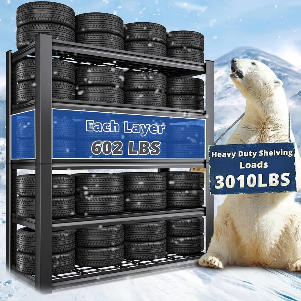 Transform your storage solutions with our Garage Shelving Heavy Duty Garage Storage Shelves, designed to provide unparalleled strength and versatility. With an impressive 3010LBS weight capacity, this adjustable 5-tier metal shelving unit is perfect for organizing everything from tools to seasonal items.