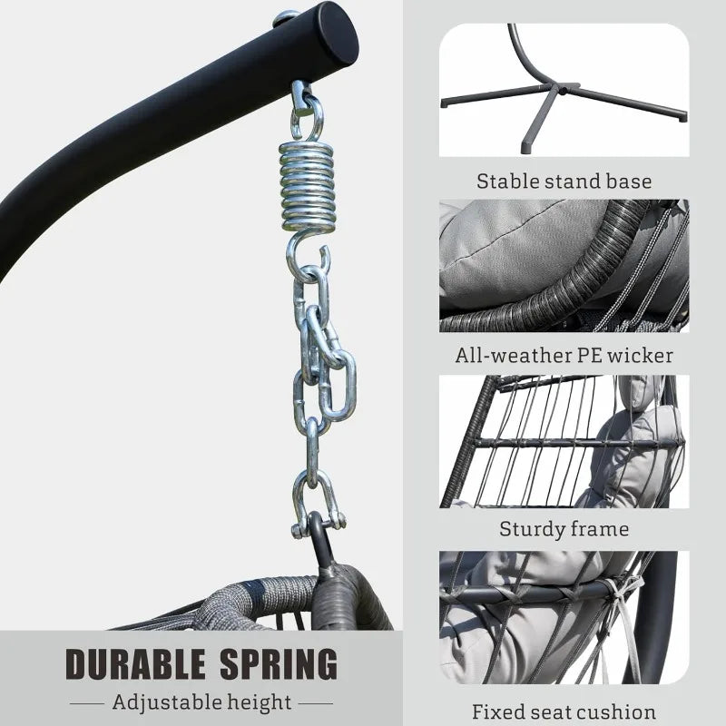 Hanging Egg Chair With Stand Grey Cushioned Patio Wicker