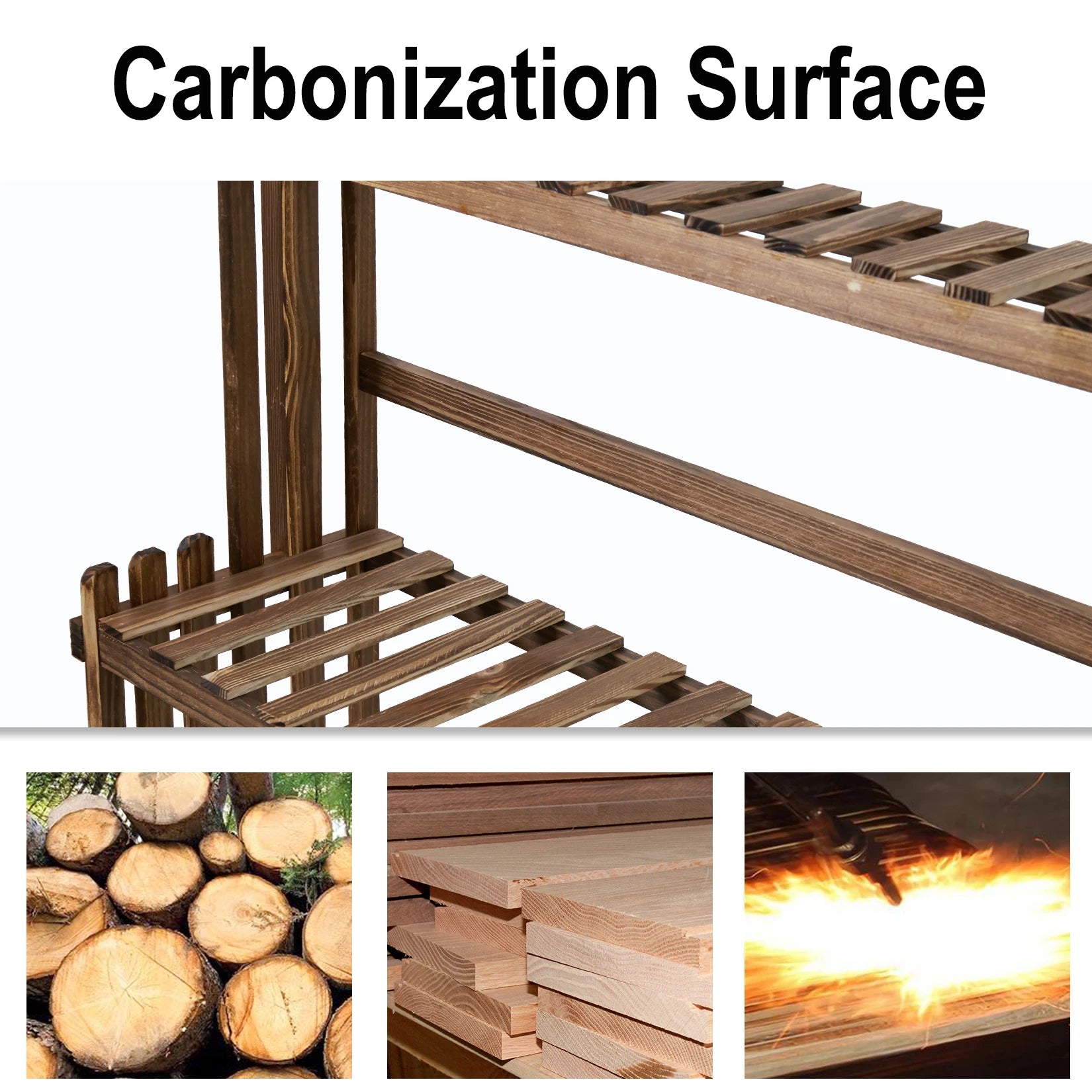 Introducing the Heavy Duty Hanging Plant Stand 3 Tier Wood Planter Rack—a stylish, space-saving solution for displaying your greenery with confidence. Crafted from solid pinewood and carbonized for added strength, this stand resists deformation and cracking, making it a durable centerpiece for indoor or outdoor spaces.