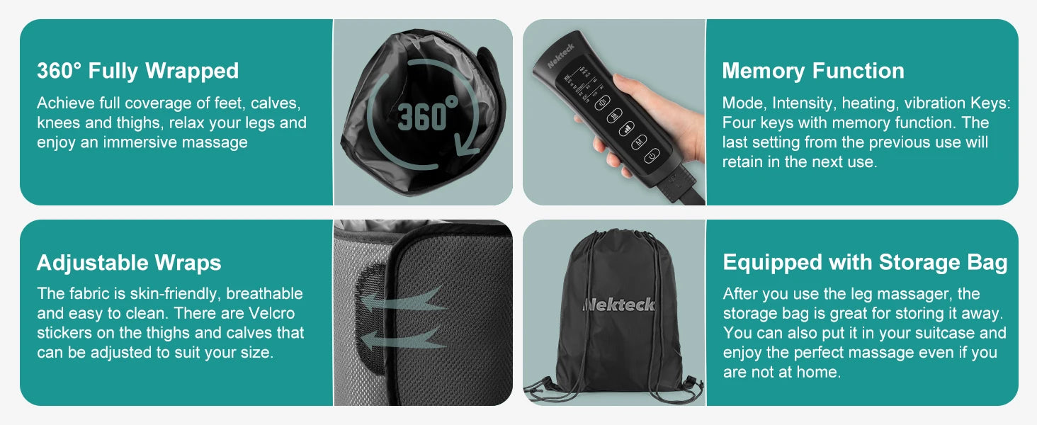 Nekteck Foot Air Pressure Leg Massager Promotes Blood Circulation Muscle Relaxation Shiatsu Airbag Calf Thigh Body Massager