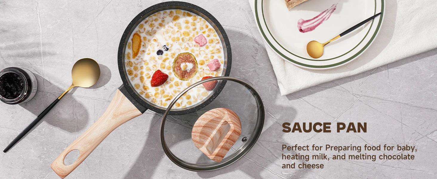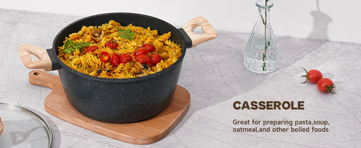 Meet the Black Granite Nonstick Pots and Pans Set — induction-ready, nontoxic cookware designed to elevate everyday cooking. The sleek black granite-style coating provides effortless nonstick performance, while staying safe for your family.