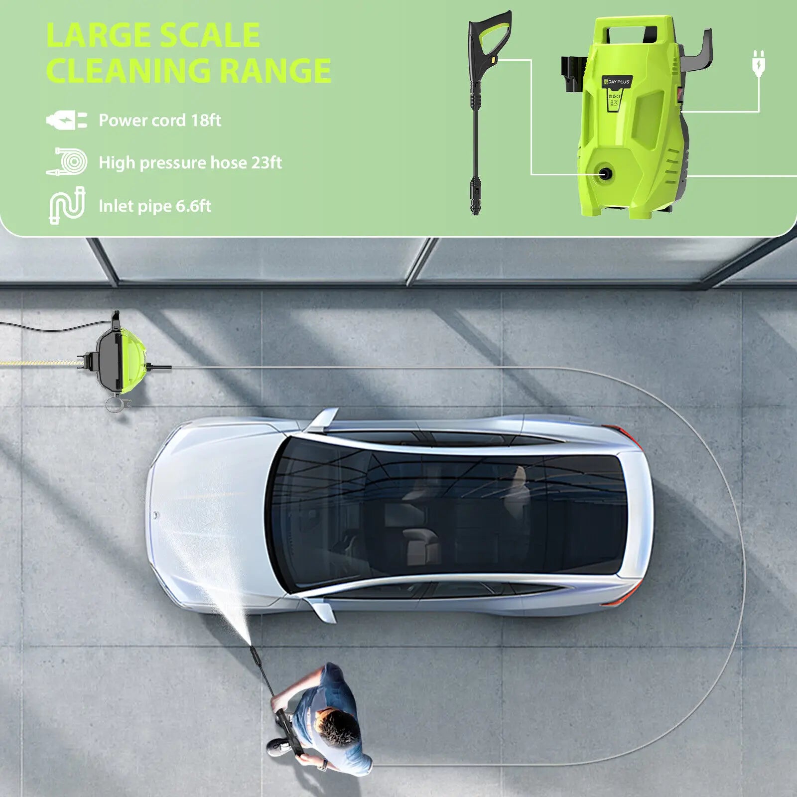 ๐ฎ High Pressure Cleaner : Powerful pressure washer offering 180bar working pressure and 5 L/minute water flow, 5.5m power cable + 7m outlet hose, self-priming, equipped with a sediment filter for fast cleaning, IPX5 waterproof system. Whether your outdoor cleaning task is light or medium duty, it will get the job done with its amazing cleaning power and excellent overall performance.