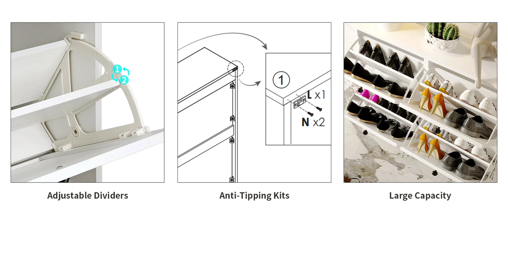 Shoe Cabinet Flip Drawers Freestanding Adjustable Shelf
