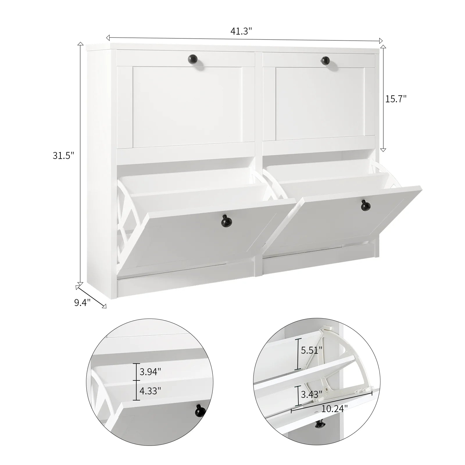 Transform your entryway with the VOWNER Shoe Cabinet Flip Drawers Freestanding Adjustable Shelf — a modern, space-saving storage solution designed to keep shoes organized and accessible. This freestanding unit measures 41.3"W x 9.4"D x 31.5"H and can stand on its own or be securely fixed to a wall for added stability, blending with minimalist and contemporary décor while freeing up floor space.