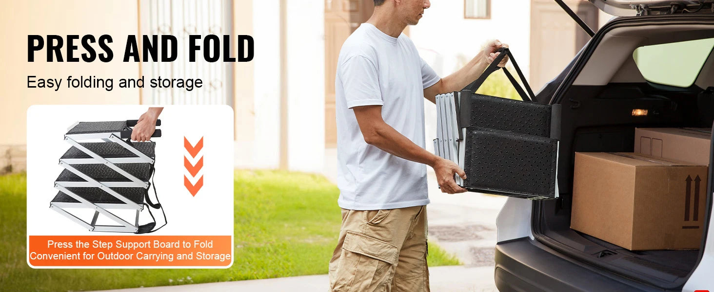 Product Dimensions: At a normal stretch angle, the portable dog steps' length and the height. At a lower angle, the length and the height, making it easy for your pet to access car trunks or side doors.