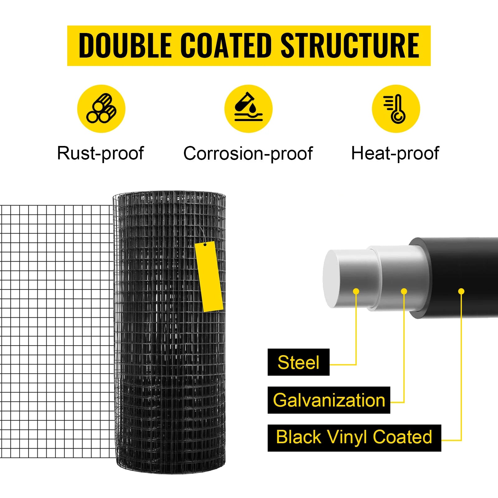 - Double-coated structure: Galvanized steel welded mesh paired with a black vinyl coat for outstanding rust, corrosion, and weather resistance.