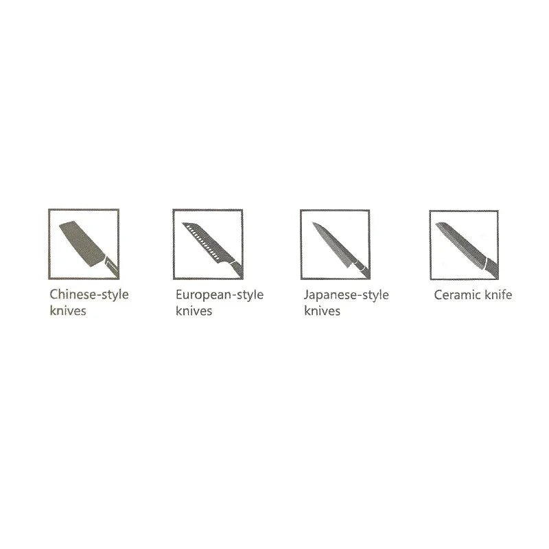 - Polishing—delivers a bright, polished edge for a refined finish; note that polishing is not suitable for ceramic knives.